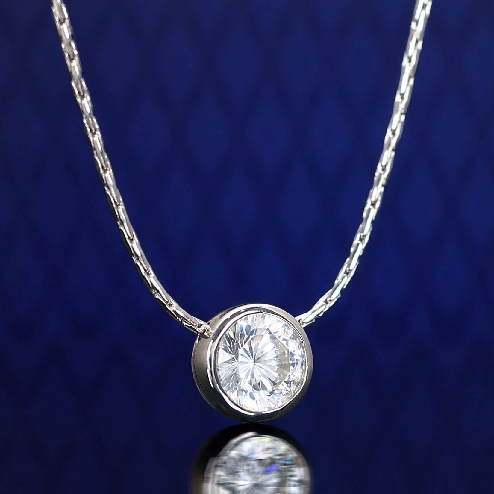 Micro-setting Brilliant cut Lab created stones Stars and moon special chain necklace, sterling silver