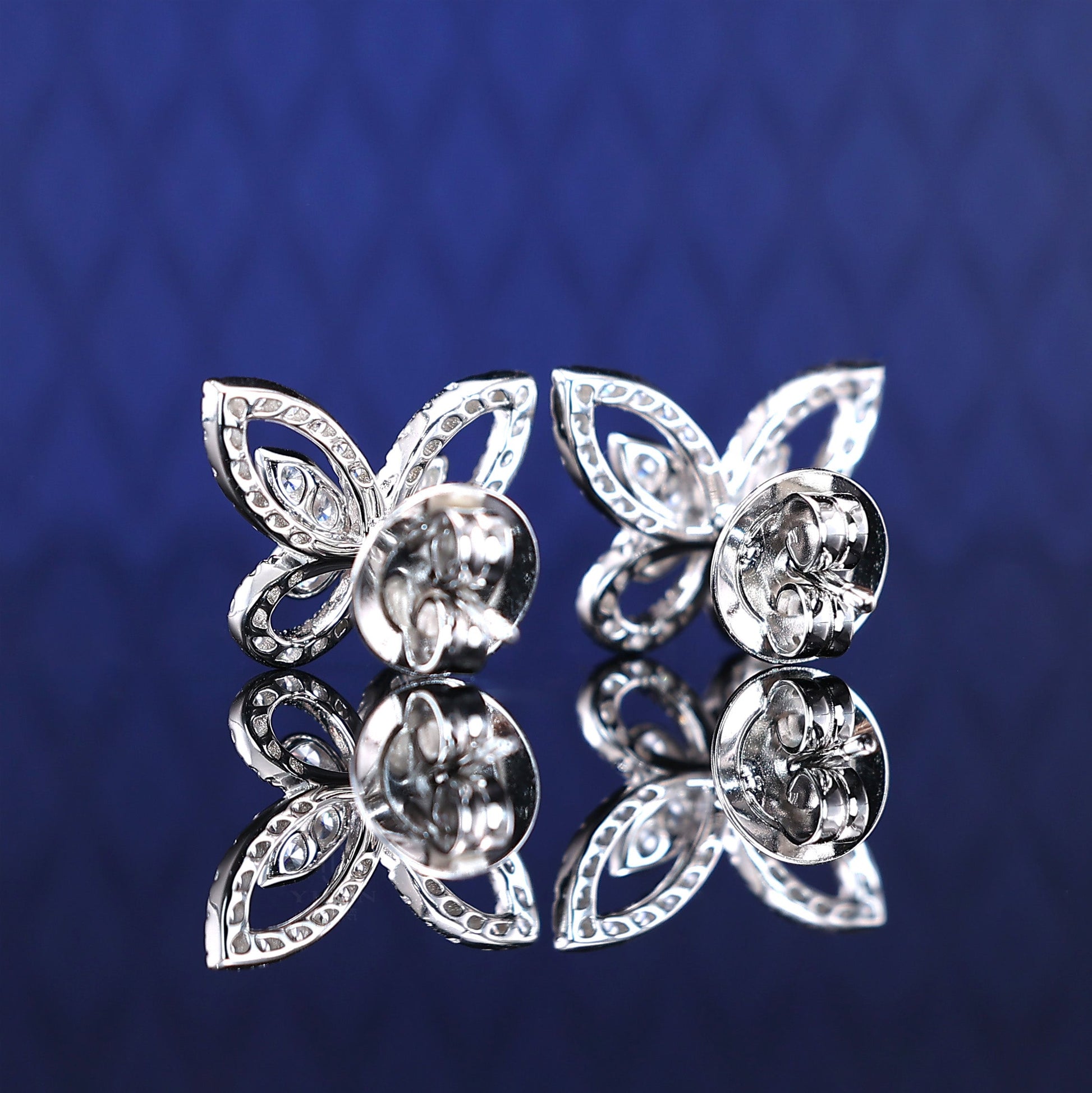 Micro-setting Lab created stones butterflies hollowed-out ear studs, sterling silver.