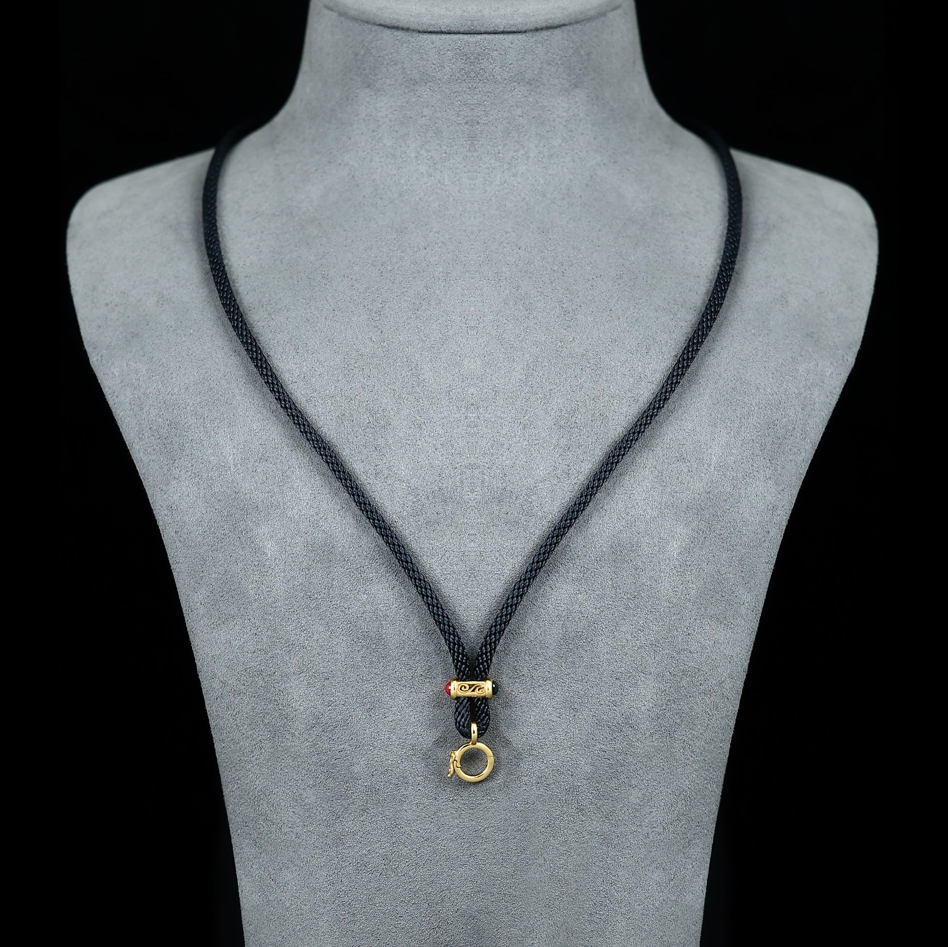 Micro-setting Lab created stones hand made Black braided string multi-purpose necklace, sterling silver