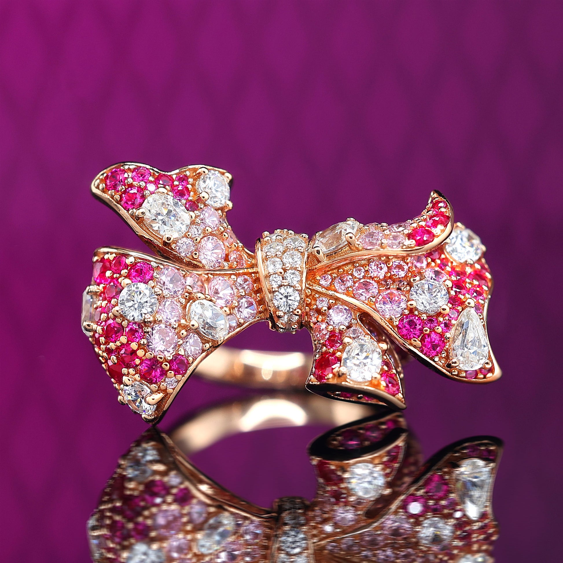 Micro-setting mixed color Lab created stones Love of Butterfly rose-gold platting ring, sterling silver