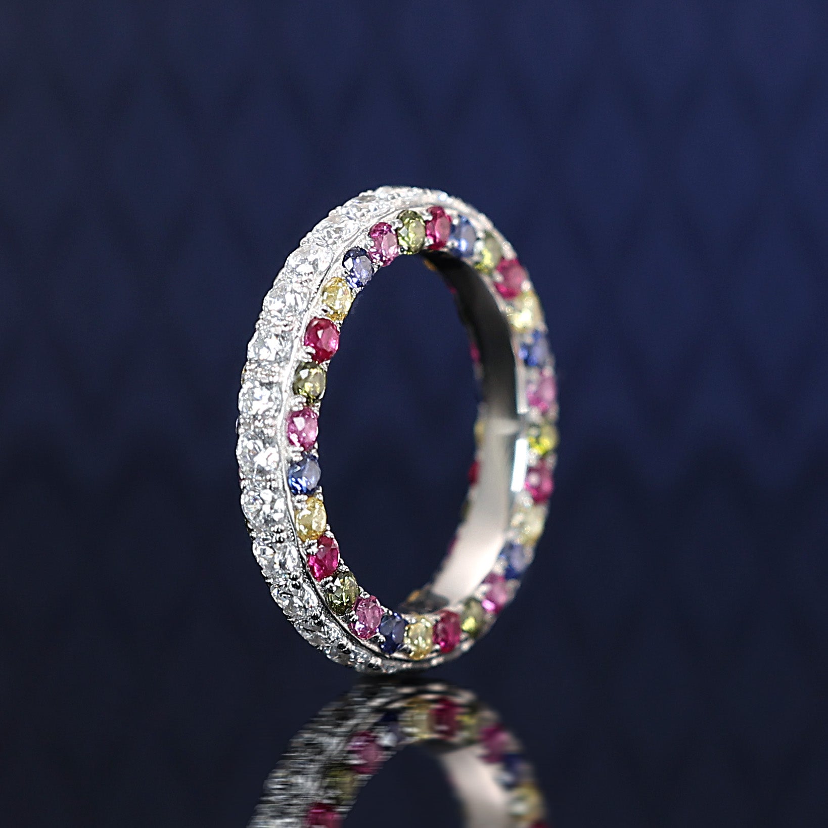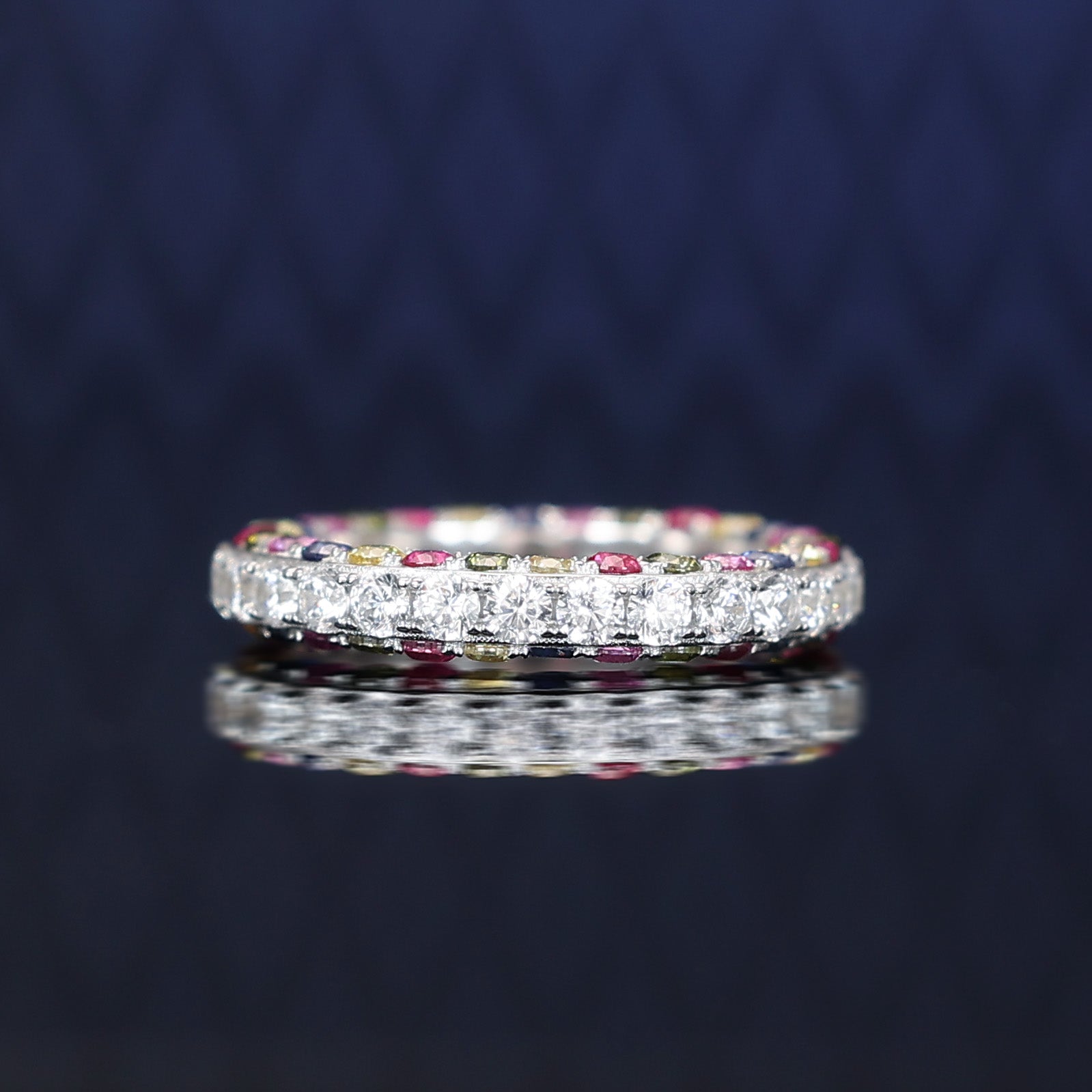 Micro-setting mixed colors lab created stones Colorful auspicious clouds band ring, sterling silver.