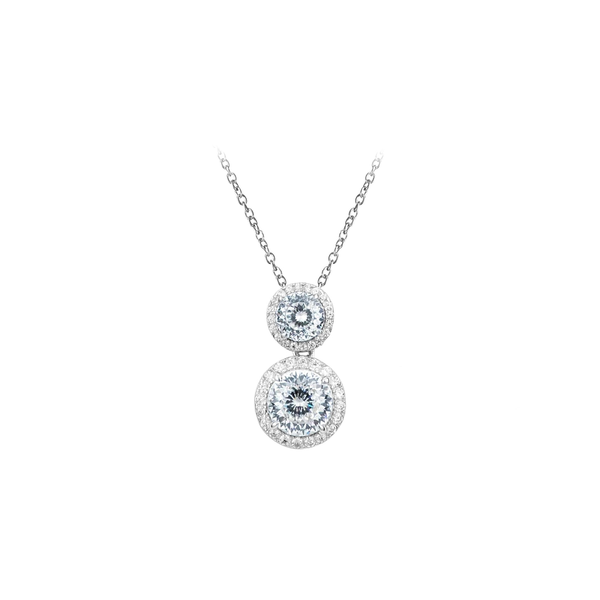 Promotional design Micro-setting Firework-cut Lab created stones big and small round shape necklace, sterling silver